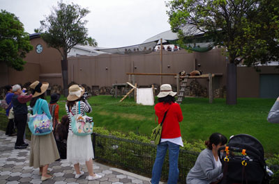 あちこちに設置されたパンダのモニュメントなどを横目に、中に入る。やはり、人の数は少ない。次第に不安になる筆者の目に飛び込んできたのは、パンダを囲む人だかりであった。