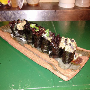 この伊那市というのは、日本でも有数の昆虫食文化が存在する地域。中でも知られるのが、ざざ虫である。ざざ虫とはトビケラ、カワゲラ、ヘビトンボといった川に住む虫の総称。冬になると伊那市周辺の天竜川では、ざざ虫を捕るざざ虫漁が現在も盛んに行われている。「虫踏み」というこの漁法は、河原の石を集めて、鉄製のかんじきでイモを洗うように踏むもの。すると、石の裏についている虫が流れて、網にひっかかるのだ。この地方では、冬の風物詩となっている。