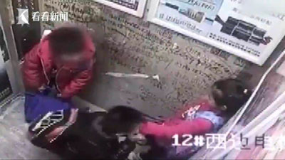 エレベーターが止まってドアが開き、女児が降りようとすると、後ろから抱きついてお別れのチュー。女児は、そのままエレベーターを降りていった。