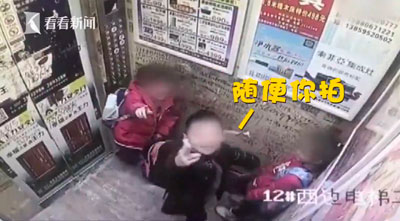 一緒に乗っていた別の男児が、エレベーターに設置されていた監視カメラを指さして「撮られてるよ」と言ったものの、当の男児はひるむどころかカメラに向かって手を振る始末。