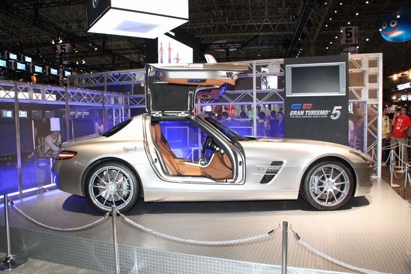 また、この日ゲーム以上に(?)注目を集めていたのが、ソニー・コンピュータエンタテインメント 「グランツーリスモ5」のブースに鎮座していた、すごいベンツ!