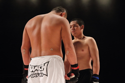 「相手の組みつきが早くて、タックルで倒せなかったのが悔しい。序盤でスタミナを使い果たして2ラウンドにヘロヘロになるのがイヤだったので、ずっと飛び込むタイミングを見ていたんですけど……。ちょっと見すぎてしまったかな」