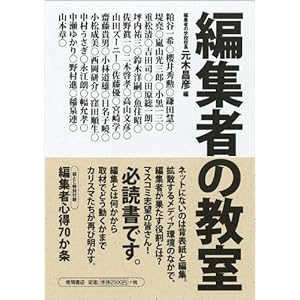 最後に、私事で恐縮だが、徳間書店から出した『編集者の教室』について書かせていただきたい。これは以前出した『編集者の学校』(講談社)の続編で、佐野眞一、坪内祐三、佐藤優、野村進、重松清、山田ズーニーさんら31人が、取材のノウハウから編集、執筆の奥義までを惜しみなく披瀝した、学生、若い編集者のための本です。ぜひご一読を。