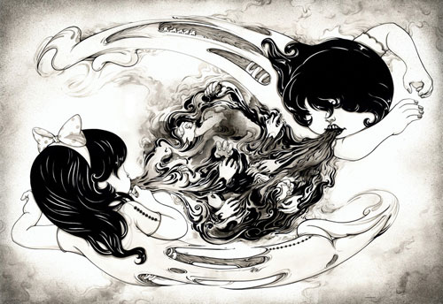 中国の北西部で生まれ、12歳の時に両親とともに北京に移ってきたYan Wei(ヤン・ウェイ)にとって、絵を描くことは当たり前のことだった。程なくして、自分の感じたことや考えを、絵を通して周りに「話し掛ける」のが、自分のやり方なのだと気がついたという。彼女の作品からは乾いた妖気が漂い、子どもの姿を借りた怖かわいい魑魅魍魎が暴れ回るさまからは、どことなくユーモアさえ感じさせる。そんな自分の作品に、日本のマンガの影響が大きく存在することを、彼女は隠さない。