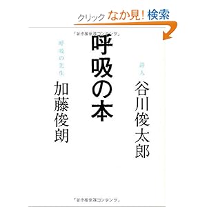 そして、生徒は詩人・谷川俊太郎さん。『呼吸の本』は、定期的に加藤さんから呼吸法のレッスンを受けているという谷川さんによる呼吸についての疑問・質問と、それに対する先生の答え、という形で構成されています。