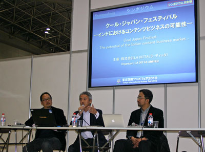 3月22日、東京国際アニメフェア2012(TAF)のシンポジウム会場で「クール・ジャパン・フェスティバル -インドにおけるコンテンツビジネスの可能性-」が開催された。このシンポジウムは、インド向けにローカライズされた『巨人の星』のテレビ放映が予定されるなど、活況を見せているインドの市場を紹介するとともに、新たなコンテンツビジネスの可能性を探るというものだ。