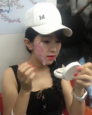 コンドームの形のまま貼りつけたのでは、効率が悪いと思うのだがほどなくしてこれはコンドームではなく、実はコンドーム形の顔面パック製品であり、彼女たちの行動は同商品のPRだったことが判明した。