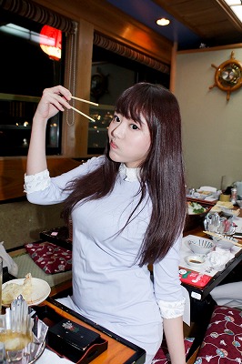 蓮実クレアちゃんは「お酒は苦手です」と言ってジュースを飲んでいたけど、目もトロンとして色気ムンムン。「こういう忘年会みたいな場は滅多にないので楽しいです」と言うと記者のテーブルを見つめて、「まあまあ食べてください。仕事しながら飲む機会も滅多にないでしょう」と優しく声をかけてくれました。佳苗るかちゃんも終始ご機嫌。「今日は参加者の方とお話しできたり、写真を撮ったり、ご飯を食べたりで、こんな機会滅多にないので本当に楽しかったです。いろんな席を回って、本当はお酒は苦手なのについつい飲んじゃったりして顔が赤くなってしまって……。船に乗るのも久々、花火も見れて最高でした。来年は自分の中でもいろいろ変化を楽しみたい一年にしたいです!」と嬉しそうに話してくれた。