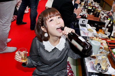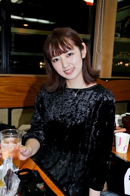 浜崎真緒ちゃんは「意外と飲まされちゃった……」とお色気ムンムンの表情でテーブルにやってくると、「今連勤中。でも体は全然平気。年末だから頑張らないとって思ってるの」とまるでサラリーマンのようなトーク。一気に親近感がわいてしまったぞ!