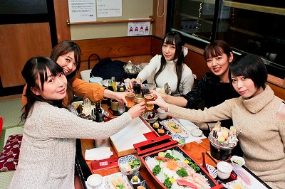 取材中にファンのテーブルを回って感想を聞くと、「普段聞けない話を聞けて、女優さんの作品以外の顔が見れてとても好感が持てました」「屋形船のイベントいいと思いました。女優さんも皆さん楽しい方ばかりで、こういう場はいいなって改めて思いました」と参加者も大満足の様子。女性ファンもいて、なかには女優さんと見間違うほど可愛い女子も。「佐倉絆ちゃんの大ファンで、いっぱい絆ちゃんのDVDを買って応募したら当たったんです。もともとAVを見るのは大好き。憧れの女優さんがたくさん同じ空間にいて感激してます!」と嬉しそうな表情。