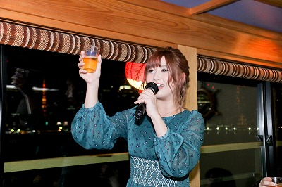 乾杯の音頭をとったのはここみんこと成瀬心美ちゃん。イベントのMCも務めるなどこの日は会場の盛り上げ役として大活躍。カリスマ性も変わらず健在で、ここみんが隣りを通るだけでここみんの風が!ファンのテーブルと女優陣のテーブルは分けられていたが、クルーズ船がお台場に近づき、夜景の綺麗なスポットに到着したところでフリートークの時間もとられ、ここではファンの各テーブルに女優陣がそれぞれビールを手に乱入。ファンとのフリートークの時間も。