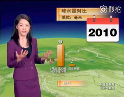 このお天気お姉さんの名前は、楊丹さん。1973年11月生まれの44歳だという。楊丹さんは1996年から現在まで変わることなく、中国中央電視台の番組で天気予報を伝えている。ちなみに中国に「天気小姐(お天気お姉さん)」などという言葉はないようで、天気予報を伝える人は「天気預報主持人」と呼ばれている(主持人=司会者)。