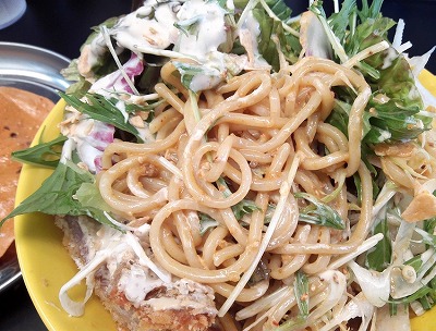 紛れもなく豚肉です。薄手のトンカツというよりは、排骨の雰囲気で、エスニックな雰囲気に一役買っています。