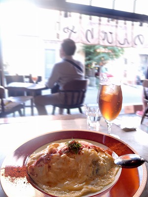 日本人にはできない大胆な着こなしに、墓の中のジイさんたちも、さぞやびっくりニヤニヤしているのではなかろうか(笑)。そうほくそ笑みつつ、墓を抜けて路地を抜け、やって来たのは古民家風のカフェだった。