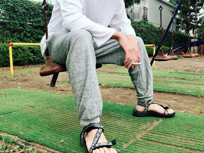 こげ茶色のソフトモヒカンで、麻のシャツに白のパンツで、首元にはサングラスをかけている。なんとなく景気のよさそうなファッションだったが、ずんぐりとした彼の体型には似合っていない。ビシっと決まらない彼の姿に、懐かしさを感じた。