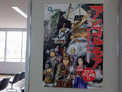そう聞くと「バス、あんまりないんですよね」と、時刻表をくれた。それに目を通していると、目に入ったのが今年アニメになった『アンゴルモア 元寇合戦記』のパンフレット。