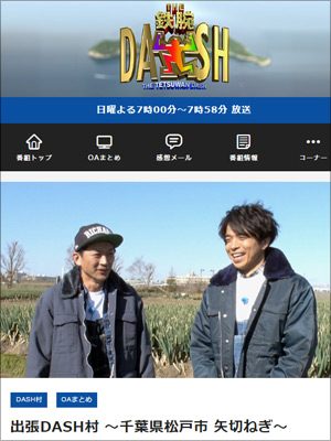 その3日放送回は、前半は「俺たちのDASHカレー」で、長瀬智也、国分太一、城島茂が出演。後半は「出張DASH村」で、国分と“助っ人参戦”のV6・井ノ原快彦が、千葉・松戸のネギ農家を訪問。収穫を手伝い、さまざまなネギ料理に舌鼓を打っていた。