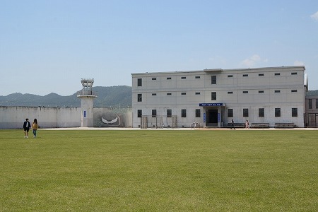 塀の中に足を踏み入れると、そこは韓国映画で見たような景色。運動場の先には、収監所と思しき建物が立っている。