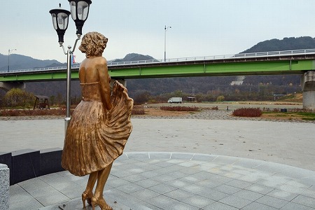 しかし、ネット上では「血税の無駄遣い」と散々な言われようだ。報道によると、この銅像だけの製作費で5,500万ウォン(約500万円)。マリリン・モンローが麟蹄に来たといっても米軍に会いに来ただけなので地域との関連は薄く、何よりなぜこんなエッチなポーズなのかと、大いに叩かれている。町の観光パンフレットに登場しないのも仕方ない話だ。