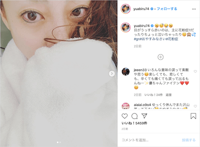 そんなあびるはこの日、「目がうっすら赤いのは、主に花粉症!!だったりちょっと泣いちゃったり」と目を赤くしている自身の写真を投稿した。