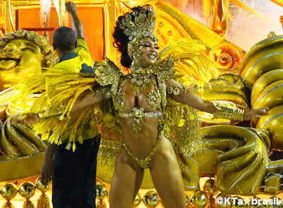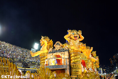 1エスコーラのパレードの長さは、7万人以上が観戦するスタンドが両側に740メートルに渡り続く、パレードコースをさらに越えるものだ。サォン・クレメンチは総勢3600人、5つもの巨大な仕掛け山車、25組の異なる衣装による役に分かれて1時間に渡り、テーマ曲サンバ・パレードによるパフォーマンスを展開。世界100カ国以上に生中継放送された。