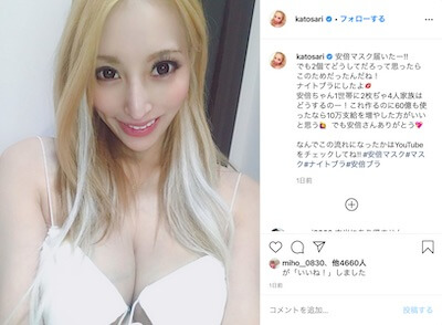この投稿にインスタグラム上では「斬新(笑)」「こんなこと思いつくのは紗里ちゃんしかいない」といった加藤の発想に驚いた声が寄せられていた。しかし、その一方でネット上からは「マスク必要な人にあげなよ」「炎上狙いとしか思えないほど非常識」「呆れて笑うしかないわ」といった声が。