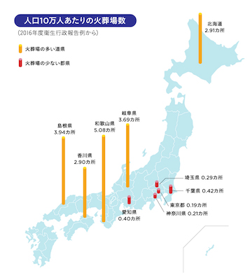 加えて、「ごみ処理場」や「墓地」などと同様に、火葬場についても“総論賛成・各論反対”という声が強く、火葬場を新設しようとしても、「火葬場を新設するのには賛成だが、近所に造るのは反対」という地域住民の反対が多く、新設は進んでいない。