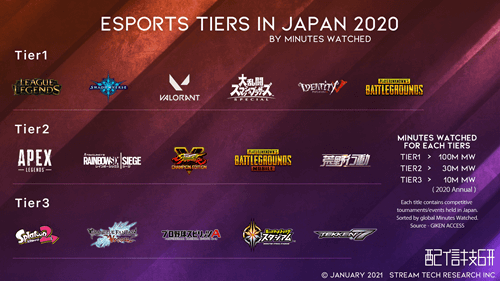 2021年1月7日、配信技研が2020年に国内で開催された競技大会を対象にしたライブ配信の合計視聴時間を算出した結果を発表。その中には、eスポーツを代表する定番タイトルはもちろん、意外なタイトルも視聴されていることがわかる。