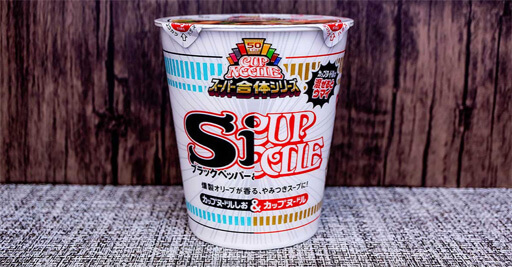 「カップヌードルしお」要素は、「燻製オリーブ」と具のキャベツ。「燻製オリーブ」の独特な香ばしさによっていつものペッパーしょうゆ味が華やぎ、スープの味にエッジが立つ印象です。「カップヌードル」よりも派手な味を選びがちな人に好まれそうな味でした。