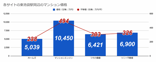 このように堅調に推移している東池袋駅の住宅価格ですが、さらにいくつかのマンションサイトを参考に、一般的なファミリー向けマンションの価格を調べてみました。一旦、ざっくり知るために築年数や最寄り駅までの距離は考慮外としています。
