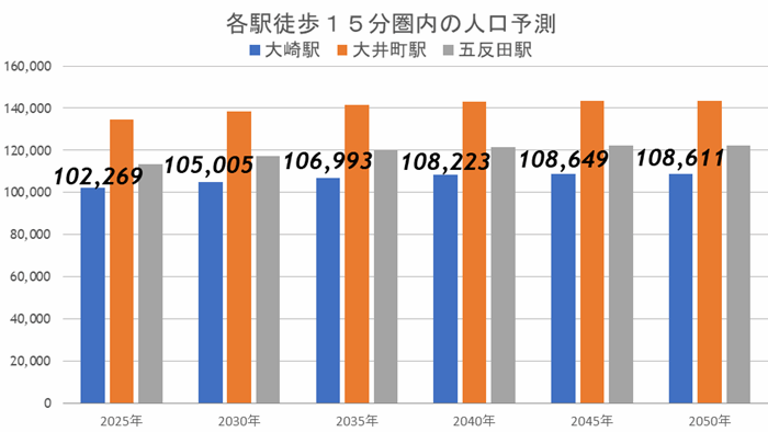 データによると、どの駅も大きな変化は予測されず、近隣駅含め人口の減少が予測されない手堅いエリアであることがわかります。
