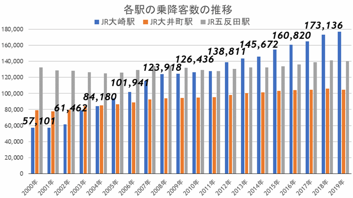データによると、大崎駅の乗降客数は年々増加傾向にありました。再開発が完了したら、さらに乗降者数は増加することが予想されます。