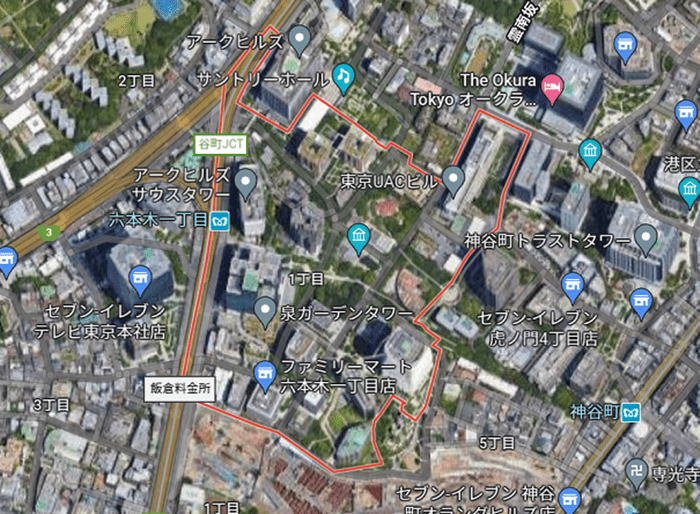 写真で確認してみると、周辺は大使館、高層ビル、高級マンションが建っていることがわかります。六本木周辺は液状化しにくいローム台地です。