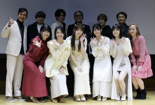 前列左から渚志帆、牧野美千子、大森莉緒、綾瀬絵梨香、間島和奏、圭叶 後列左から東真司、シオ、古井弘人、倉科遼、坂本真一、渡洋史