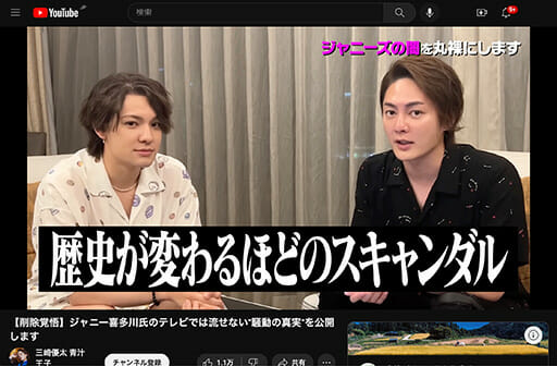 そんな中、同じくYouTubeでは、芸能界に詳しいホリエモンこと堀江貴文氏が、「ジャニー喜多川氏の性加害が告発された件について解説します」と題した動画を14日に公開。