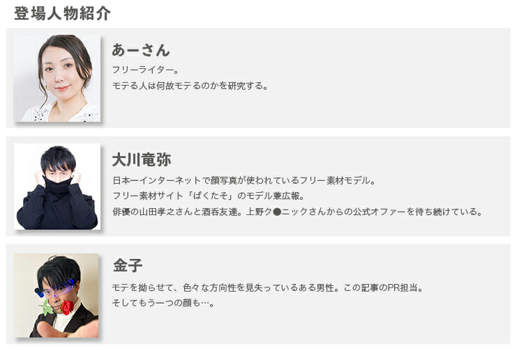 あーさん 大川さん、単刀直入に伺いますが、フリー素材モデルをはじめてモテるようになりましたか?