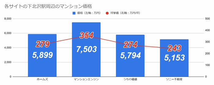 最後に、AIを使った評価で業界を引っ張っているソニー不動産では、下北沢駅が平均価格5,153万円(243万円/坪)、明大前駅が平均価格5,023万円(237万円/坪)でした。
