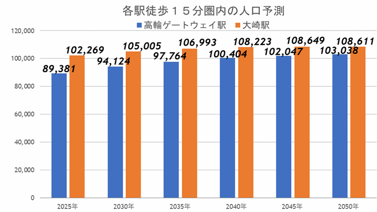 どちらの駅も、今後のタワーマンション建設等、再開発事業による人口増加が数値に反映されていると考えられます。