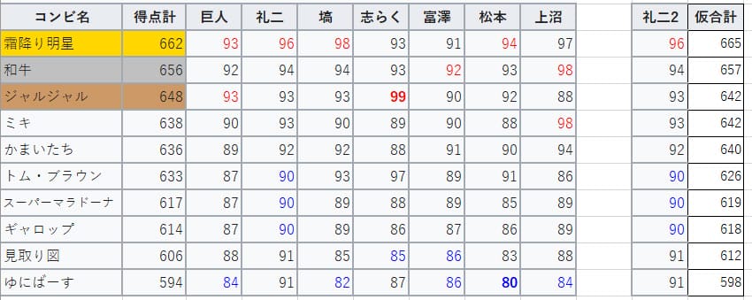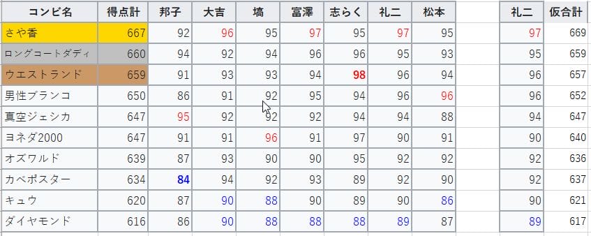 だが、実際に志らくと「2人目の礼二」を入れ替えてみても、順位に変動はなし。3位ジャルジャルと4位ミキが同点で並ぶが、「高い得点を付けた審査員が多い方」という規定に沿えばジャルジャルの勝ち上がりで変更はない。