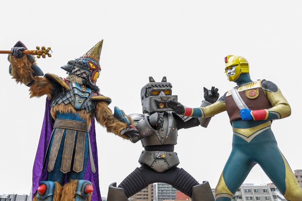 河崎実 けっこういろいろ考えてるのよ。SNSのクソコメの問題とか、承認欲求とか、転売ヤーの話も入ってるし。時代を象徴するものを入れてる。なんでかっていうと、世の中の悪とか、必ずそこから入らないと話ができないんです。なんで地球を侵略するのか、とか。最近のウルトラマンなんか、理由もなく怪獣が出てくるじゃない。しょうがないんだけどね、テレビは商業主義だから。こっちは何をやってもいいんでね。へへへ。俺のスタイルでやってるよね。